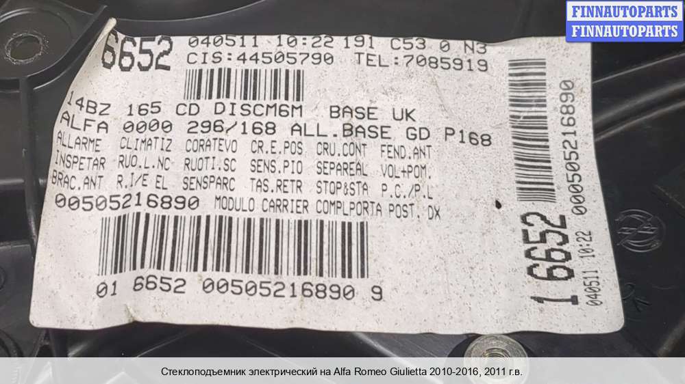 стеклоподъемник электрический двери задней правой | Alfa Romeo Giulietta (940) (2010 - 2020) |
