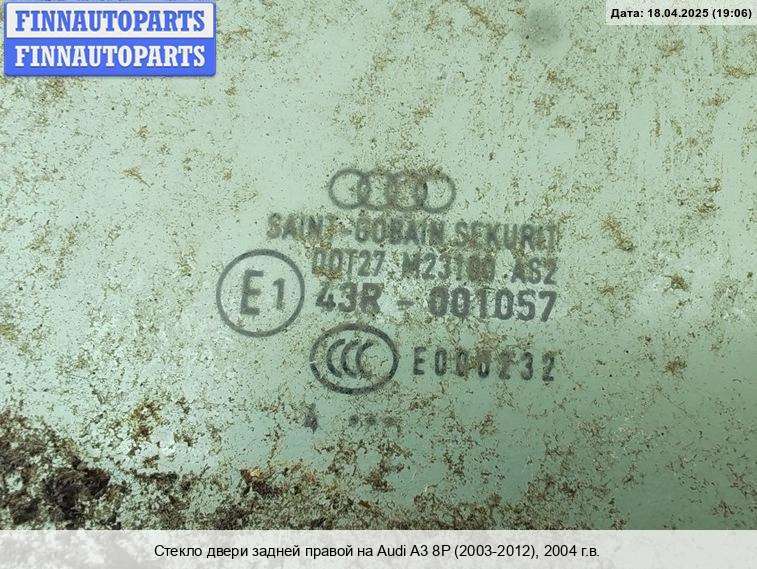 стекло двери задней правой | Audi A3 8P (2003 - 2013) |