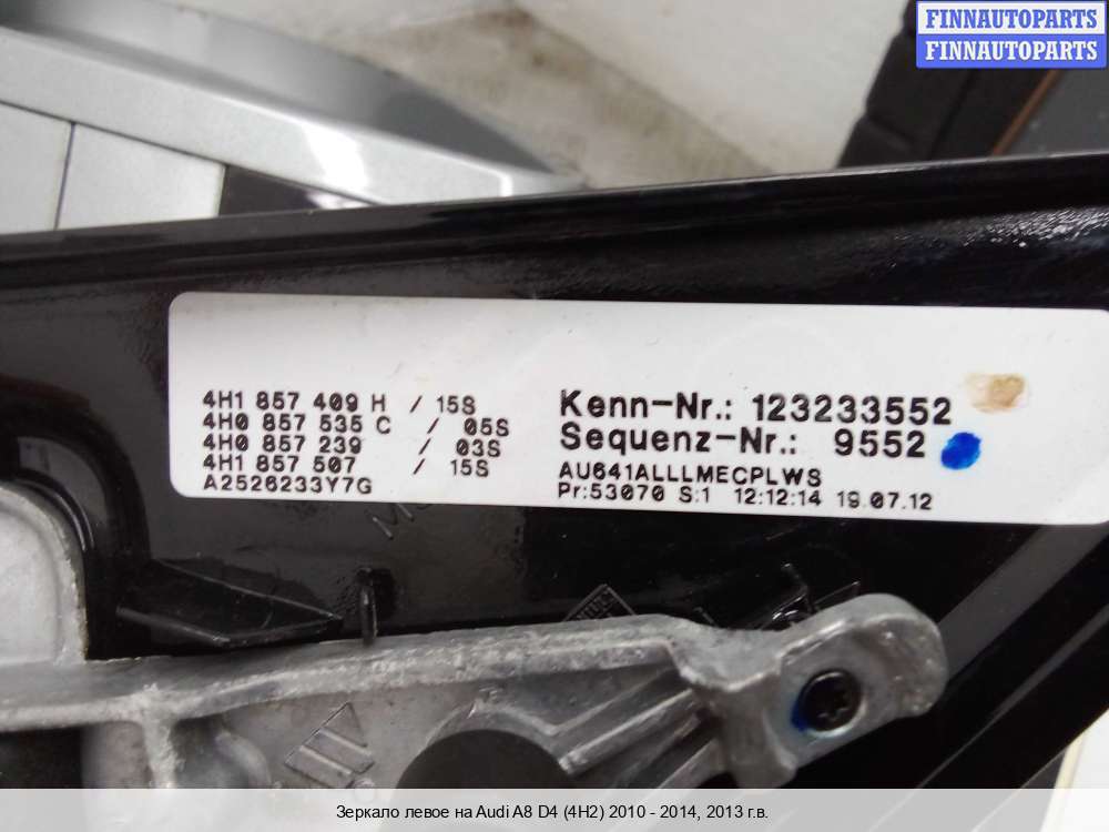 Компания FINNAUTOPARTS занимается продажей контрактных (б/у, бывших в употреблении) запчастей для иномарок. В нашей компании продаются только оригинальные запчасти из Европы, Японии и Кореи, которые не имеют пробега по РФ. Если вы хотите приобрести боковое зеркало (левое) для а/м Ауди А8 Д4, смело обращайтесь в нашу компанию. Все наши менеджеры — профессионалы своего дела, и с удовольствием помогут вам купить запчасти, в том числе, боковые зеркала левые, на Audi A8 (D4, 4H) и другие автомобили.