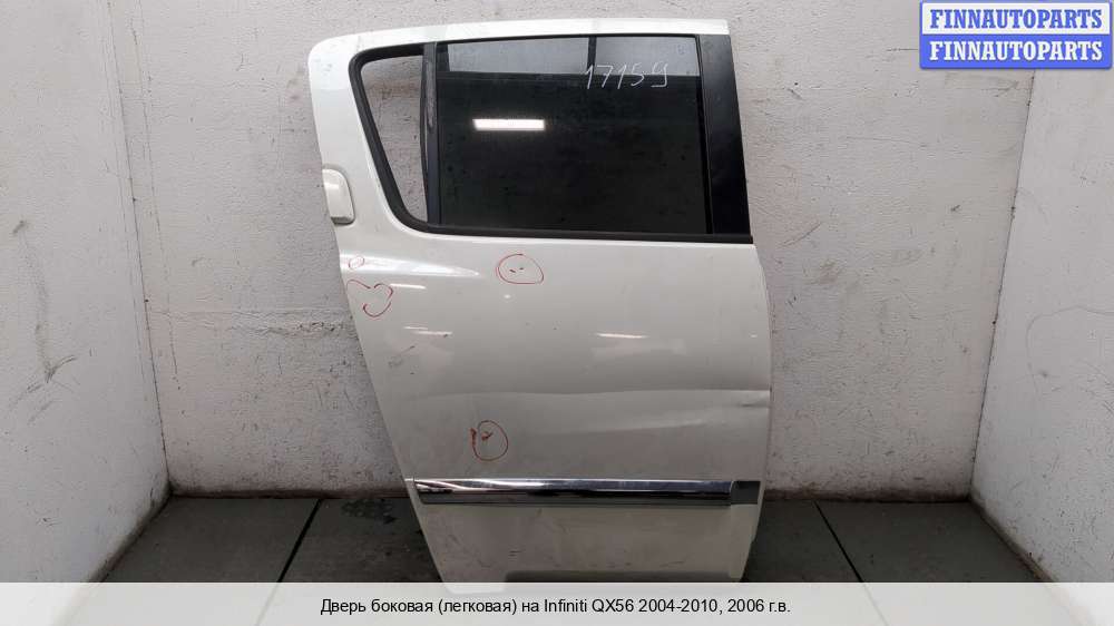 Компания FINNAUTOPARTS занимается продажей контрактных (б/у, бывших в употреблении) запчастей для иномарок. В нашей компании продаются только оригинальные запчасти из Европы, Японии и Кореи, которые не имеют пробега по РФ. Если вы хотите приобрести боковую дверь (задняя правая) для а/м Инфинити Ку Икс 56, смело обращайтесь в нашу компанию. Все наши менеджеры — профессионалы своего дела, и с удовольствием помогут вам купить запчасти, в том числе, боковые двери задние правые, на Infiniti QX56 (JA60) и другие автомобили.