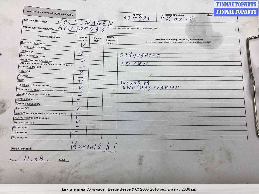 Севастополь | 2006 | 038100040G, 2006, 1.9л, Дизель, TDI, BSW, BSW004770, 038100040G, Хэтчбэк 3 дв., красный, Фото не актуально, с запчасти отделены: Генератор, Насос гидроусилителя руля (ГУР), Турбина, Компрессор кондиционера, BSW004770 | - | К | С, прокручивается, состояние ГРМ - нормально, поддон - нормально, клапанная крышка - нормально, эмульсия - нет, люфт турбины, деф. разъема дроссельной заслонки., | |||